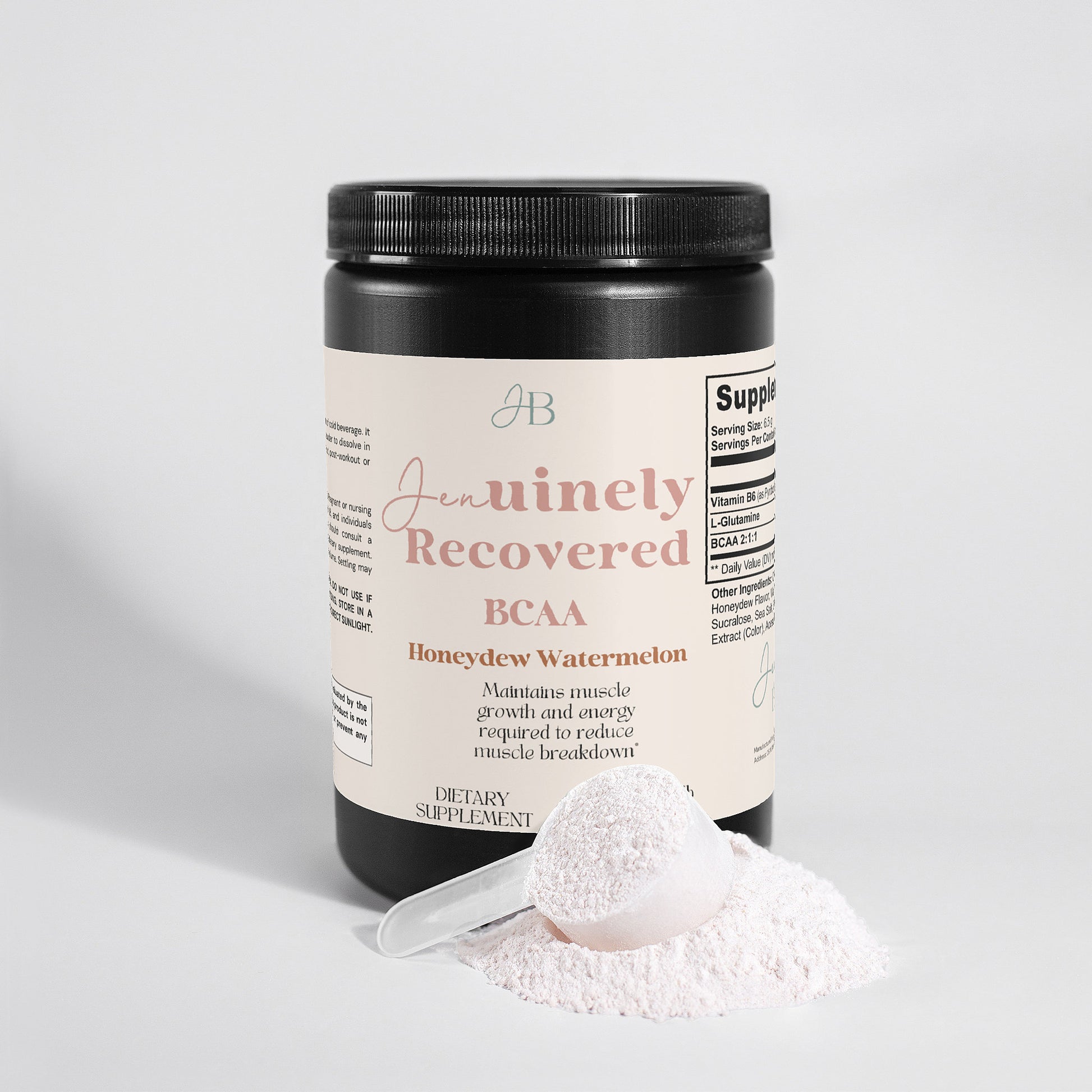 Jenuinely Recovered BCAA Post Workout Powder is a blend of 5000mg of branched-chain amino acids and Glutamine for lean muscle and recovery. It contains the ideal ratio of 2 parts Leucine to 1 part Isoleucine and Valine. These amino acids increase protein synthesis and nitrogen retention, both essential to building lean muscle.